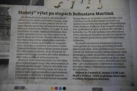 „STOLETÝ“ VÝLET PO STOPÁCH BOHUSLAVA MARTINŮ – KÁCOV